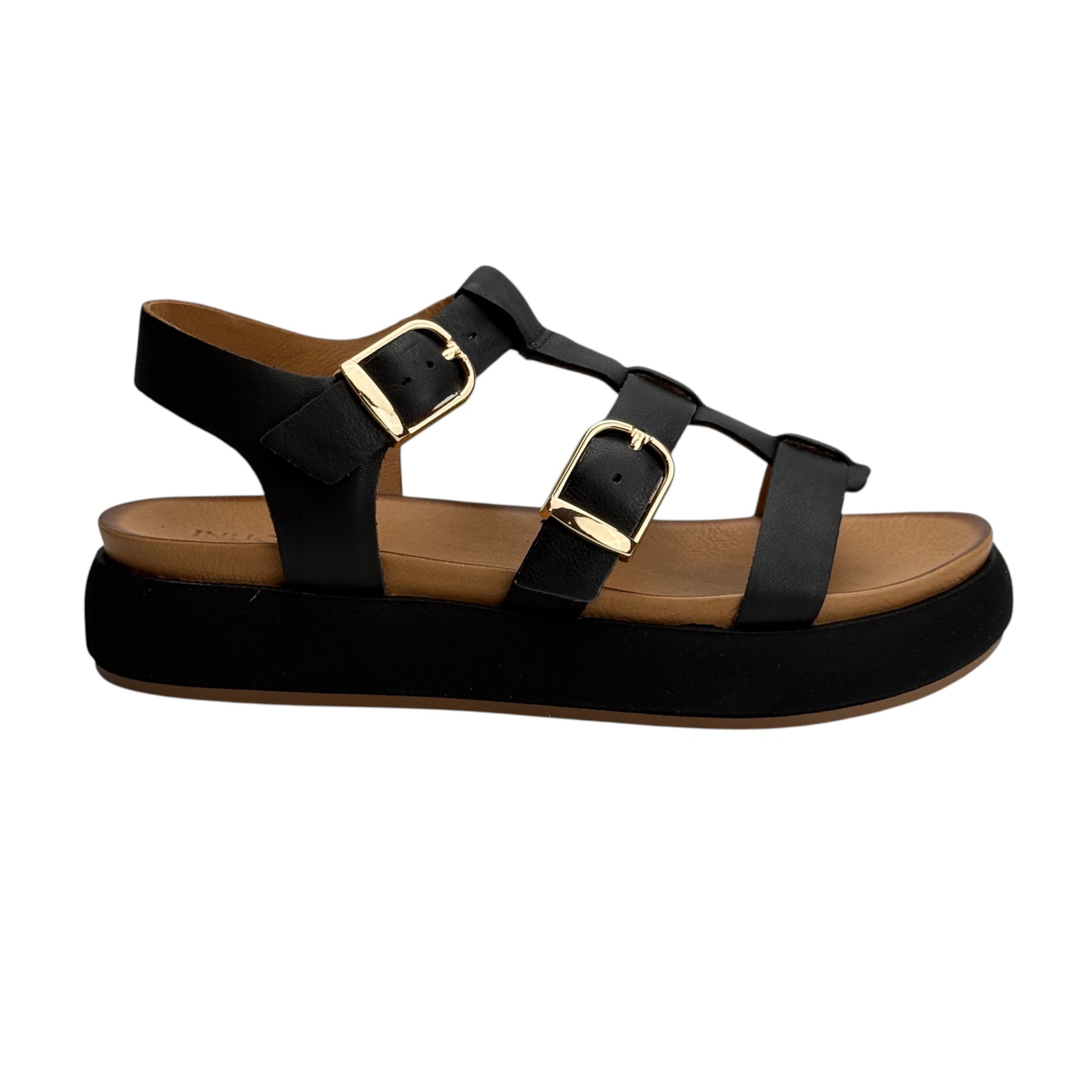 INUOVO SANDALO NERO FIBBIE