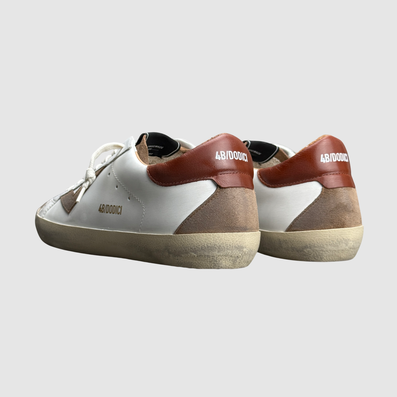 • Tomaia in pelle bianca e camoscio tabacco