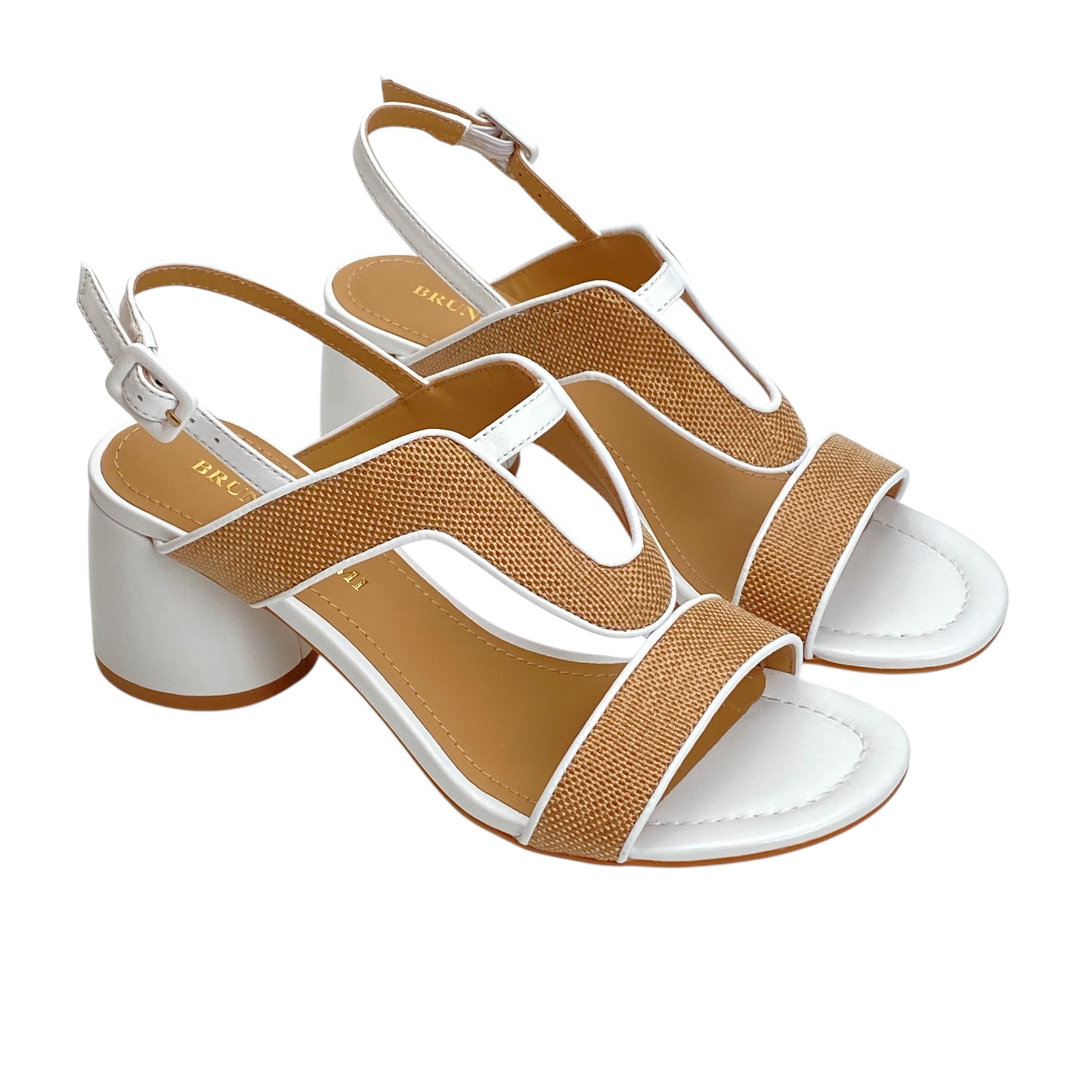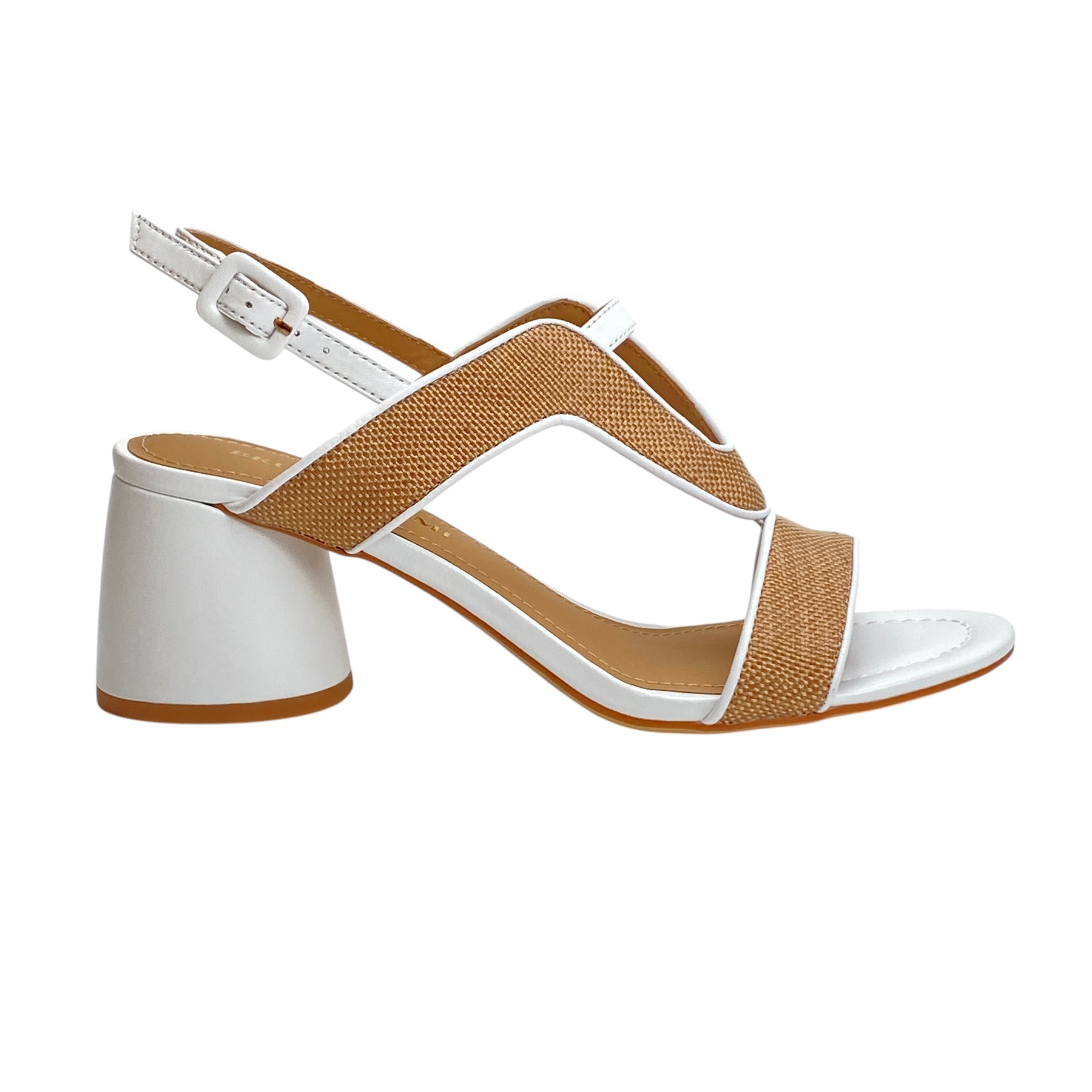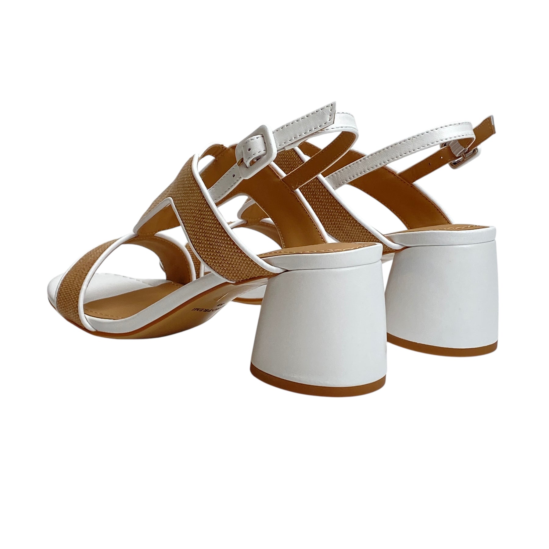 • Tomaia pelle bianca e canvas cuoio