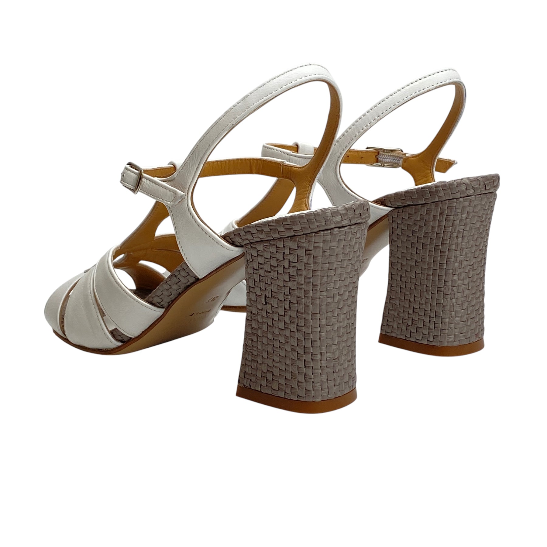 • Materiale nappa bianco e rafia taupe