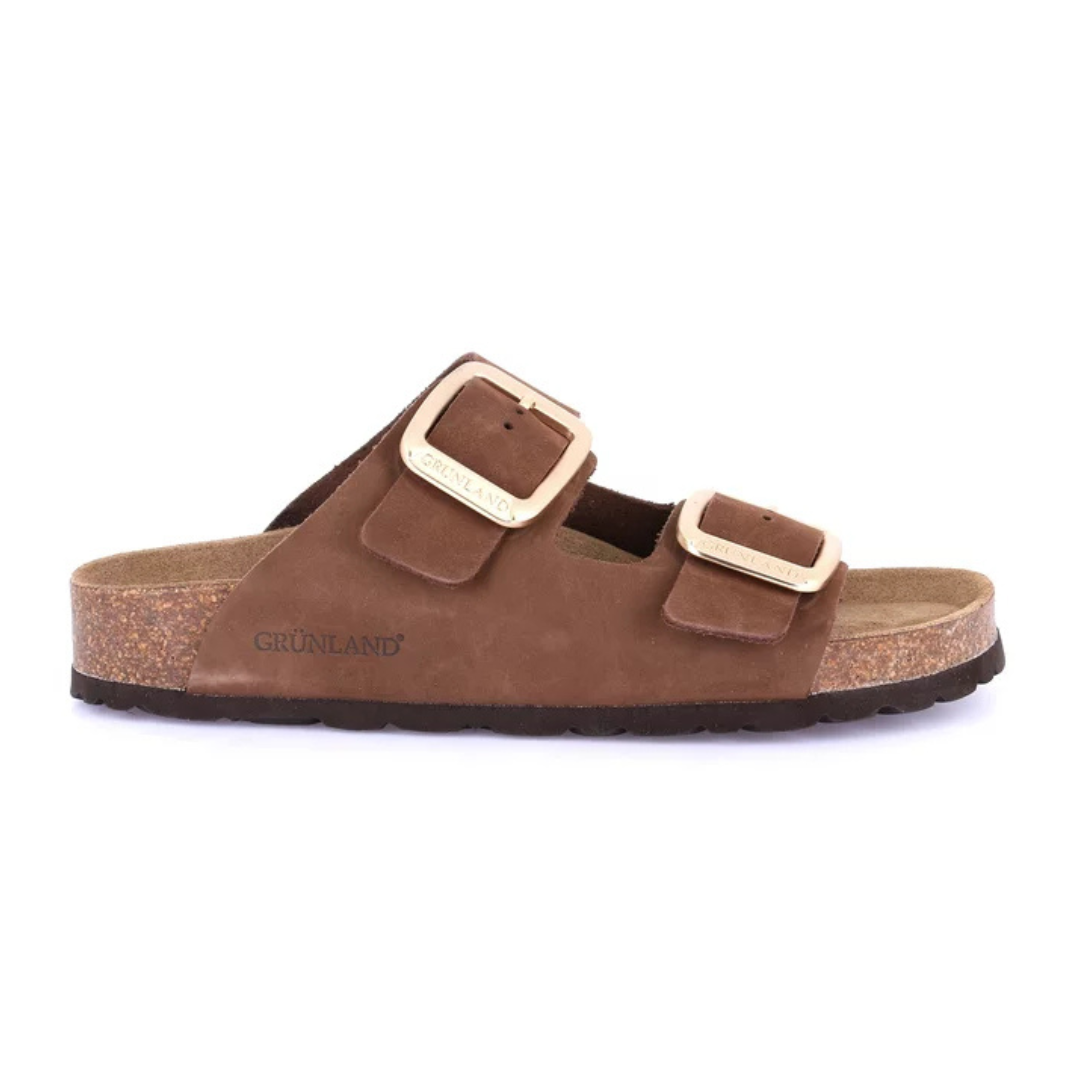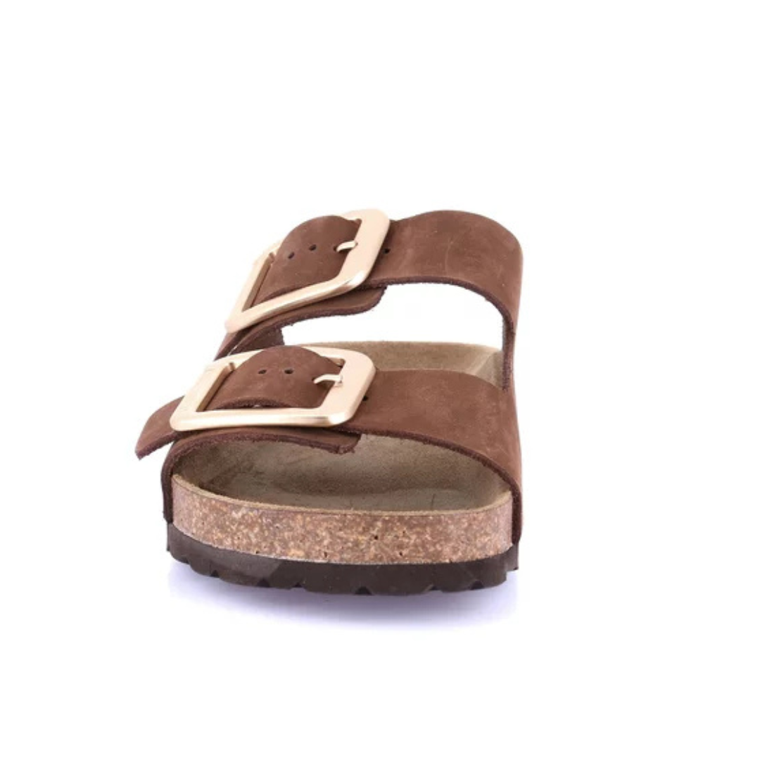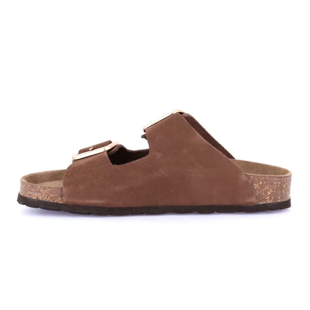 Suola in sughero platform, maxi-fibbie e una pregiata tomaia in nabuk: rompi la routine del tuo guardaroba con ENNY! Questa ciabatta ti accompagna nei mesi estivi con genuinità e benessere. Il sottopiede Re-Soft ammortizza l’impatto al suolo e accoglie il piede con una comodità senza pari.